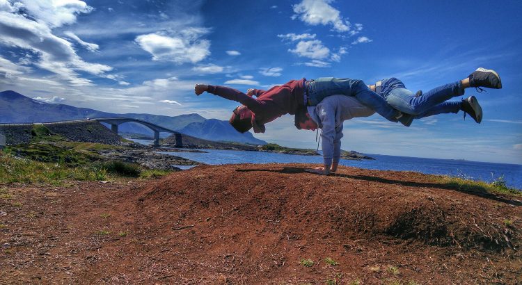 Voordat we het dagprogramma van vandaag konden gaan beleven – een rit over de Atlantic Road – hebben we een pitstop moeten maken bij de lokale Noorse supermarkt. Met 10 colaflessen rijker, en 50 euro armer kunnen we de komende vier dagen weer vooruit. De Atlantic Road is letterlijk een route door de Atlantische oceaan. Deze 8 km lange weg verbindt de twee dichts bevolkte steden van de provincie Møre: Kristiansund en Molde (Jordy zegt: “hufters!”). Het bijzondere aan de Atlantic Road zijn de scherpe bochten van de route en het woeste landschap dat je passeert. De scherpe bochten vonden wij meevallen, maar wij zijn natuurlijk onze Max Verstappen gewend. Wel hebben we genoten van het uitzicht.