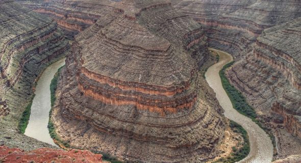 Goosenecks State Park ligt aan de San Juan rivier. Deze rivier heeft er samen met de wind voor gezorgd dat er zulke diepe kloven zijn ontstaan. Een indrukwekkend stukje natuur en absoluut de moeite waard voor een stop.