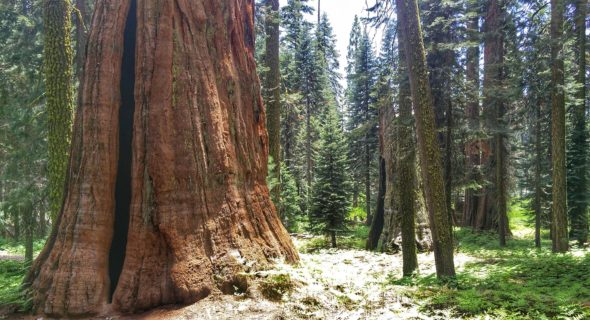 Eenmaal boven zijn we eerst het Giant Forest in gegaan: het bos met de reuzenbomen. Eerst reden we de weg waar we door de Tunnel Log heen kwamen. Dit is een omgevallen boom waar een gat in is gemaakt zodat je er met de auto doorheen kunt rijden. De Sequoia bomen zijn inmens groot. De grootste boom die het park heeft is de General Sherman Tree, met een hoogte van 84 meter. Deze boom is 2200 jaar oud. We hebben deze boom niet bezocht omdat we graag een minder toeristisch stuk wilden bezoeken.