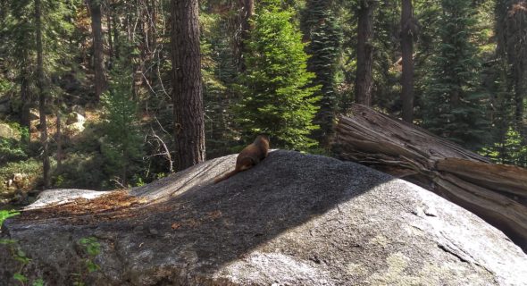 Vervolgens zijn we verder het park in gereden en besloten we de Tokopah Falls op te zoeken. Dit was (heen en terug) een wandeling van 5,4 kilometer, waarbij we op de heenweg uiteraard omhoog moesten lopen. Dit was een prachtige hike door de bossen, en later over flinke rotspartijen. Het uitzicht was fascinerend. En onderweg zijn we zelfs nog Ed en Willem Bever tegen gekomen!